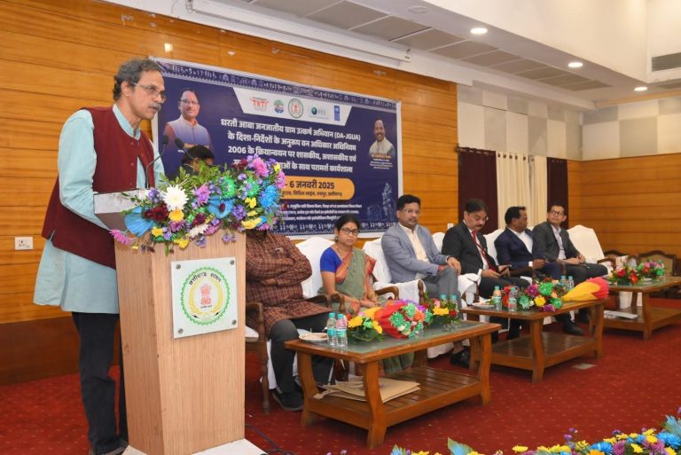 The Tribal Department, Government of Chhattisgarh, in collaboration with the United Nations Development Program (UNDP), Foundation for Ecological Security (FES), and Ashoka Trust for Research in Ecology and the Environment (ATREE), successfully organized a consultative workshop on the implementation of the Forest Rights Act (FRA) at the New Circuit House, Raipur. The workshop was part of the recently launched Dharti Aba – Janajatiya Gram Utkarsh Abhiyan (DA-JGUA), inaugurated by the Prime Minister on October 2, 2024. The workshop saw participation from 28 NGO representatives from 24 organizations, 24 FRA Coordinators, 30 AC-Tribal and approximately 10 state officials from TD, FD and PRD.